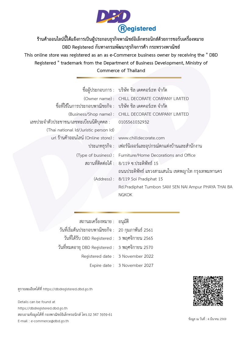 บริษัท ชิล เดคคอร์เรท จำกัด รับประกันผลงานทุกรายการ